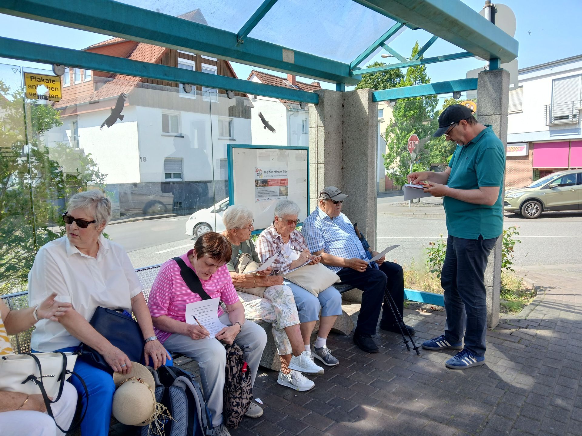 Pünktlich um 9:15 (die meisten waren schon früher da 😁), haben sich alle Wanderer der Gruppe A „Am Haag“ getroffen und schon voller Vorfreude auf den Bus gewartet. Dann gings los, der Bus kam und die erste Gruppe war auf dem Weg. Alle Busverbindungen haben hervorragend funktioniert, es wurden nette Gespräche geführt, über Johannisbeeren und andere sommerliche Themen und schwupps waren wir schon da. In Wetzlar angekommen hat sich die Gruppe gleich auf den Goethe-Wanderweg gemacht und die herrliche hessische Landschaft (Hügelrauf und -runter) „genossen“. Das war angesichts des Wetters eher schweißtreibend. Aber auch hier wurde viel gesprochen und gelacht und wie im Flug ging die Runde vorbei und die Gruppe erreichte das Restaurant „Tasch am Kornmarkt“.