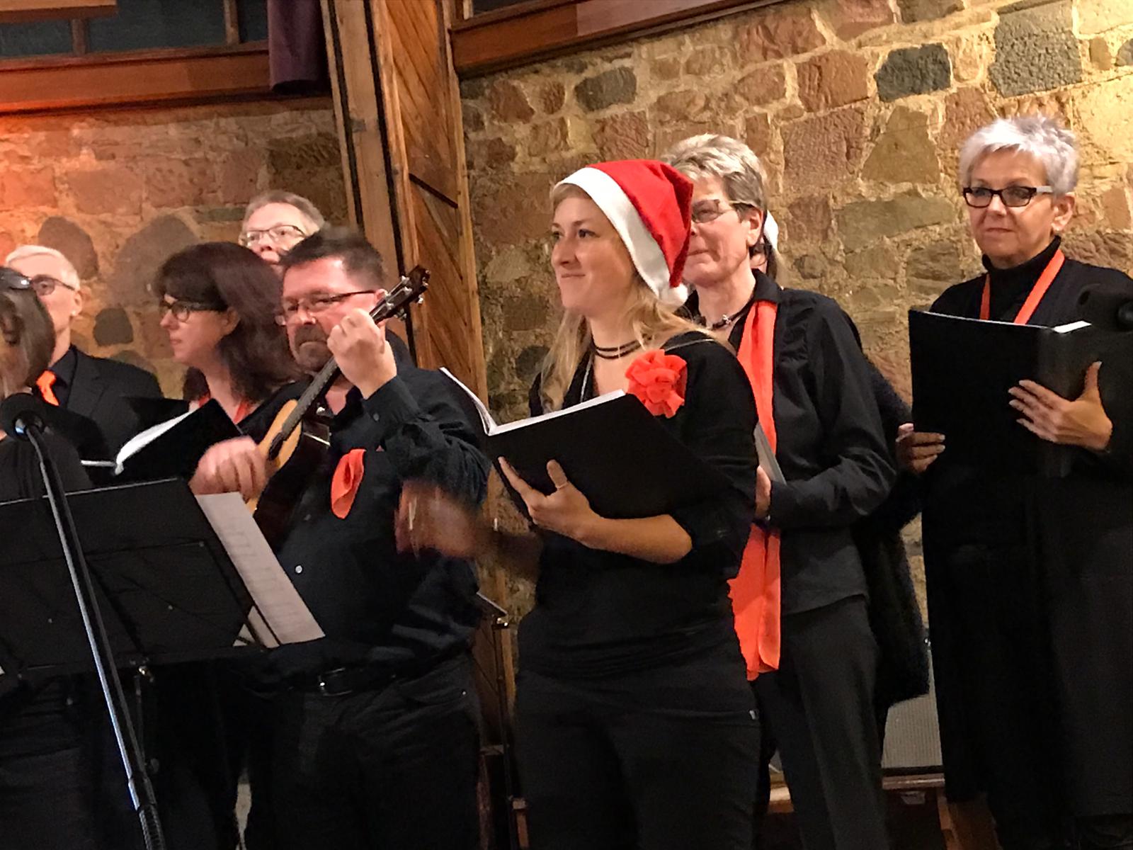 Am 10. Dezember, also dem 2. Advent, durften wir in der Martinkirche unser Adventskonzert singen und damit unser tolles Jubiläumsjahr gebührend abschließen. Wir hatten ordentlich Spaß unsere Lieder zu präsentieren. Einige gehören schon länger zu unserem Repertoire wie z.B. internationale Weihnachtslieder "Jul, Jul" aus Schweden, "Celebremos las Navidades" aus Lateinamerika und "Feliz Navidad" aus Spanien. Und ganz besonderen Spaß hatten wir unsere neuen Lieder zu präsentieren, wie "Swing low, sweet chariot" und "Human". Ein lieber Dank geht natürlich an unsere Assi Rinn und Janis Weber, die wie gewohnt sehr souverän durch unser Konzert führten, an Carmen Müller unsere 1. Vorsitzende, die auf die wichtigen Events im vergangenen Jubiläumsjahr hinwies, und die Nachwuchsband "Young Spirit Band", die mit bekannten Melodien den Abend bereicherten und sogar eine Eigenkomposition von Jannis Weber uraufführten. Und last but not least an unseren Uli Faatz der uns super zum und durch das Jubiläumsjahr geführt hat.