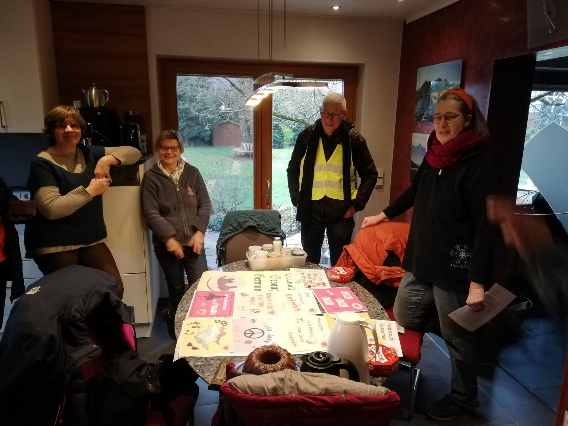 Es war wieder ein super Probenwochenende mit den GoSpirits! Dieses Mal hatten wir den Flensunger Hof in Mücke ausgewählt, um dort unser Probenwochenende zu erleben. Natürlich hatten sich schon alle riesig gefreut und so gab es ein großes Hallo, als alle nacheinander eintrudelten und Gerardus uns den Probenraum aufschloss. Die Stühle wurden schnell gestellt und dann ging es auch schon los - unsere erste Einheit. Es war schon viel Gutes dabei. 🤭Und natürlich hatten wir unseren Holli nicht vergessen, der hatte Geburtstag und wurde gebührend mit Kuchen und Gesang gefeiert. Und schon hatten wir uns zum ersten Spieleabend im Bistro eingefunden. Der war wirklich lustig, es wurde viel gespielt, gesungen, gequatscht und das ein oder andere Getränk konsumiert. Schließlich kann man mit einem trockenen Hals nicht singen. 😁😉Aber die Nacht war kurz und einige schafften es sogar vor dem Frühstück noch eine Runde zu schwimmen. Und nach dem Frühstück ging es gleich weiter nach Polen, unseren Probenraum. Wir haben fleißig geprobt, gefeilt und uns verbessert. Wenn es mal nicht geklappt hat, gab es ein kleines Konzert für alle draußen vor dem Probenraum. Das motiviert und schafft einen neuen Rahmen und Blickwinkel. Ein kurzes Mittagessen und dann ging es nochmal weiter mit den Proben. Aber dann war Zeit für die GoSpirits als Gruppe. Es wurde gewandert, geboult, gegeocacht, gequatscht und einfach mal die Sonne genossen. Die Abendprobe, nur unterbrochen von einem netten Abendessen, war wirklich produktiv und alle konnten miterleben, wie wir uns verbesserten. Da hatten wir uns einen weiteren Spieleabend echt verdient. Glücklich und endspannt ging es wieder ins Bistro, mit guter Laune hatten wir wieder einen lustigen Abend, dieses Mal mit Besuch. Und leider hat sich das zweite Geburtstagskind vor 12 verabschiedet. So haben wir es mit besten Wünschen, Umarmungen und Kuchen zum Feiern nach Hause entlassen. Die Nacht war überraschenderweise wieder kurz. Trotzdem war die Schwimmgruppe am Start und frisch gefrühstückt ging es dann wieder zur Probe. Fleißig bis zum Mittagessen. Dieses wurde noch gemeinsam verbracht und dann verabschiedeten sich alle in den Restsonntag. Schön war's.🎼🎶🎤😁🍰☕🎉🥂