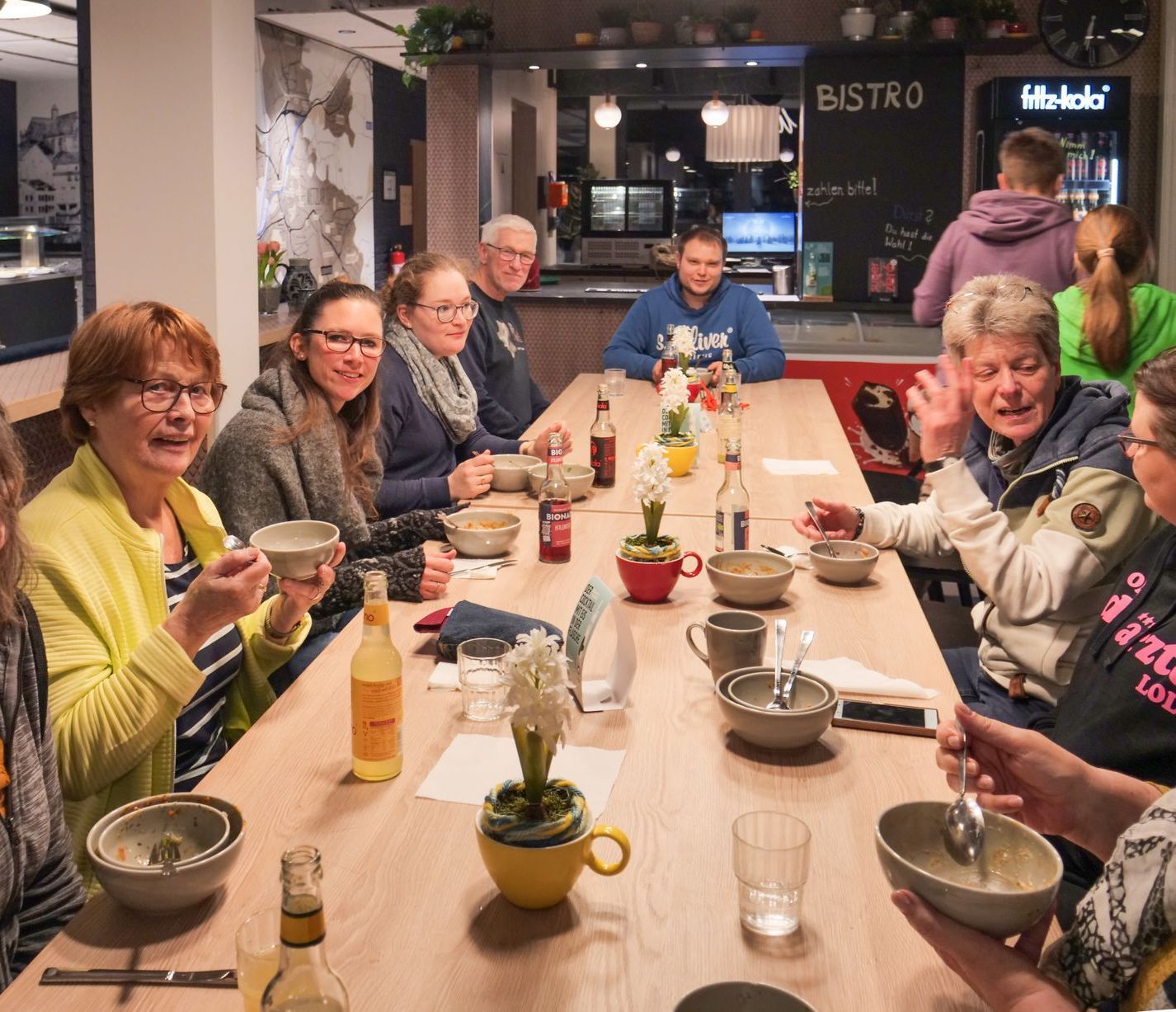 Und eigentlich zeitgleich erreichte die Gruppe C das verabredete Restaurant, die sich gemütlich bei bestem Wetter eine schöne Busfahrt von Heuchelheim nach Wetzlar gönnte und so die Ausflugsgruppe komplettierte. Über 40 GermanInnen waren dabei von 4 bis 90 Jahre.
