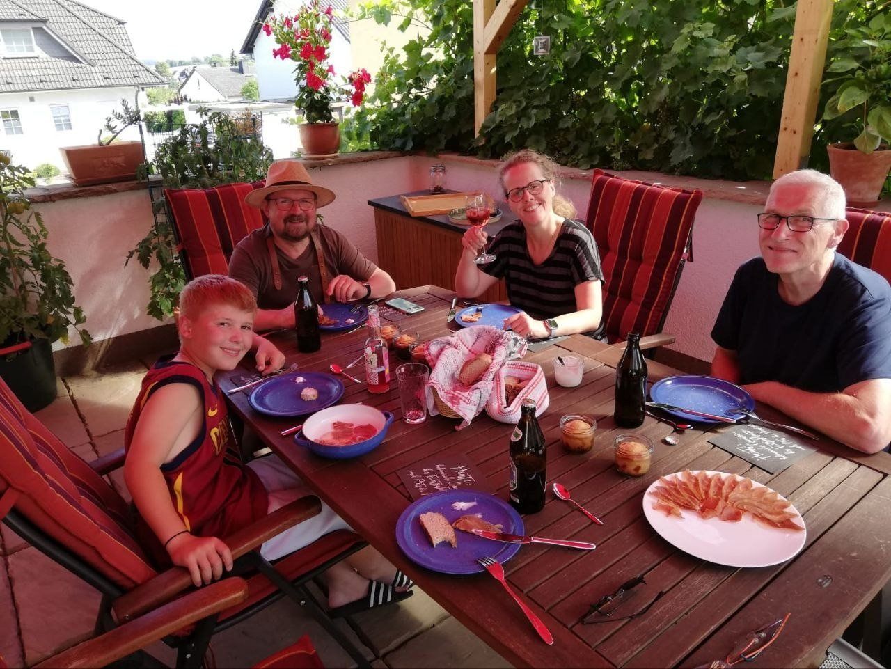 Also war alles klar, der Termin schnell gefunden und es konnte los gehen. Am 30 Juli 10:45 bei Petra im Garten. Natürlich gab es da schon die ersten Stärkungen in fester und flüssiger Form 😉.